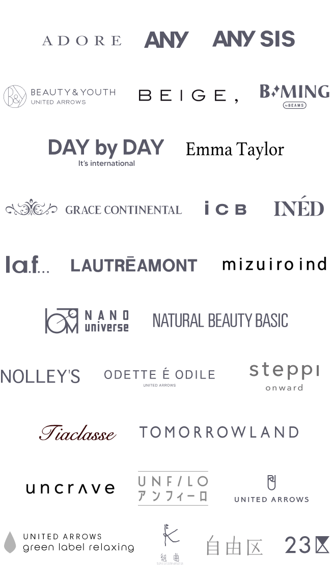 パーソナルスタイリングサービス「DROBE」では、様々なブランドさまの商品をお取り扱いしております。ブランド数は順次拡大中です。